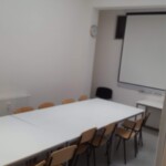 The seminar rooms are equipped with a projector, a screen, a whiteboard, as well as